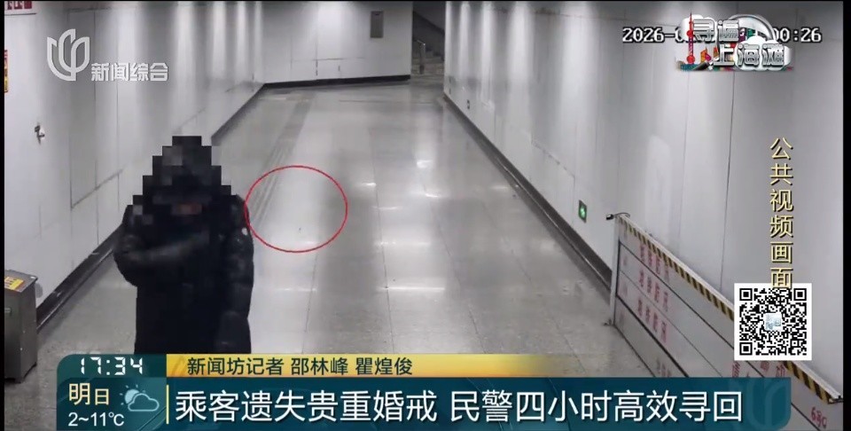 这个婚戒价值不菲,工作人员也很替乘客着急,立即通知轨交分局西藏南路站治安派出所的民警。接报后,民警第一时间赶到现场。那么,这枚婚戒最后又是怎么找到的呢?民警:你什么时候掉的?失主:刚才。民警:你确认吗?你确定是掉在这个进站的地方,还是说你也不确定?失主:6号口走进来的掌心策略,我从单位里出来掌心策略,然后骑脚踏车过来掌心策略,一路都找过掌心策略,单位里也没有。了解情况后,民警立即陪同失主前往出入口处寻找,却没有任何线索。随后,民警又调取站内多角度公共视频,终于有了新发现。画面显示,当时失主在进站时,用力甩动袖子,抖落外套上的雨水,就是在这时,不慎将佩戴的婚戒甩落了。